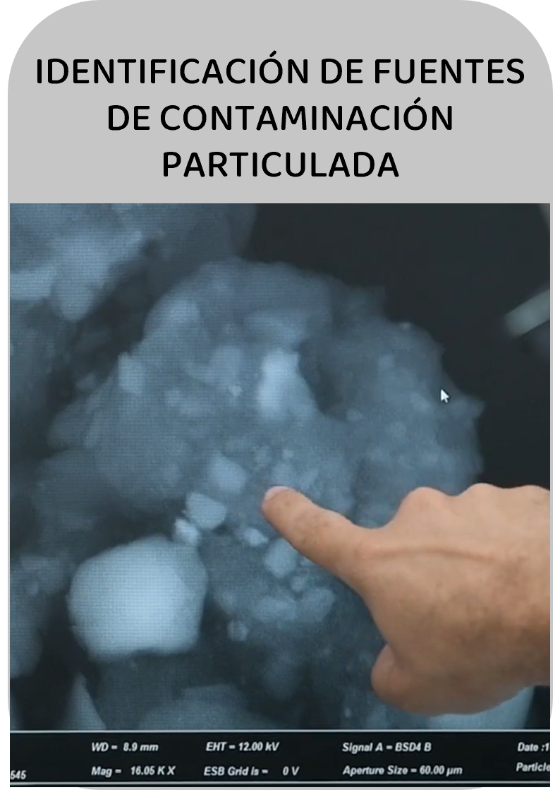 Apoyamos a oficinas de ingeniería y consultoras ambientales con datos de alta resolución sobre la composición y las fuentes del material particulado. Ya sea para evaluaciones de impacto, apoyo en procesos de permisos o el diseño de estrategias de mitigación, nuestros análisis proporcionan evidencia sólida y específica por fuente. Con nuestra experiencia en análisis forense de partículas, ayudamos a transformar desafíos complejos de calidad del aire en resultados claros y accionables, respaldados por la ciencia y adaptados a condiciones reales.